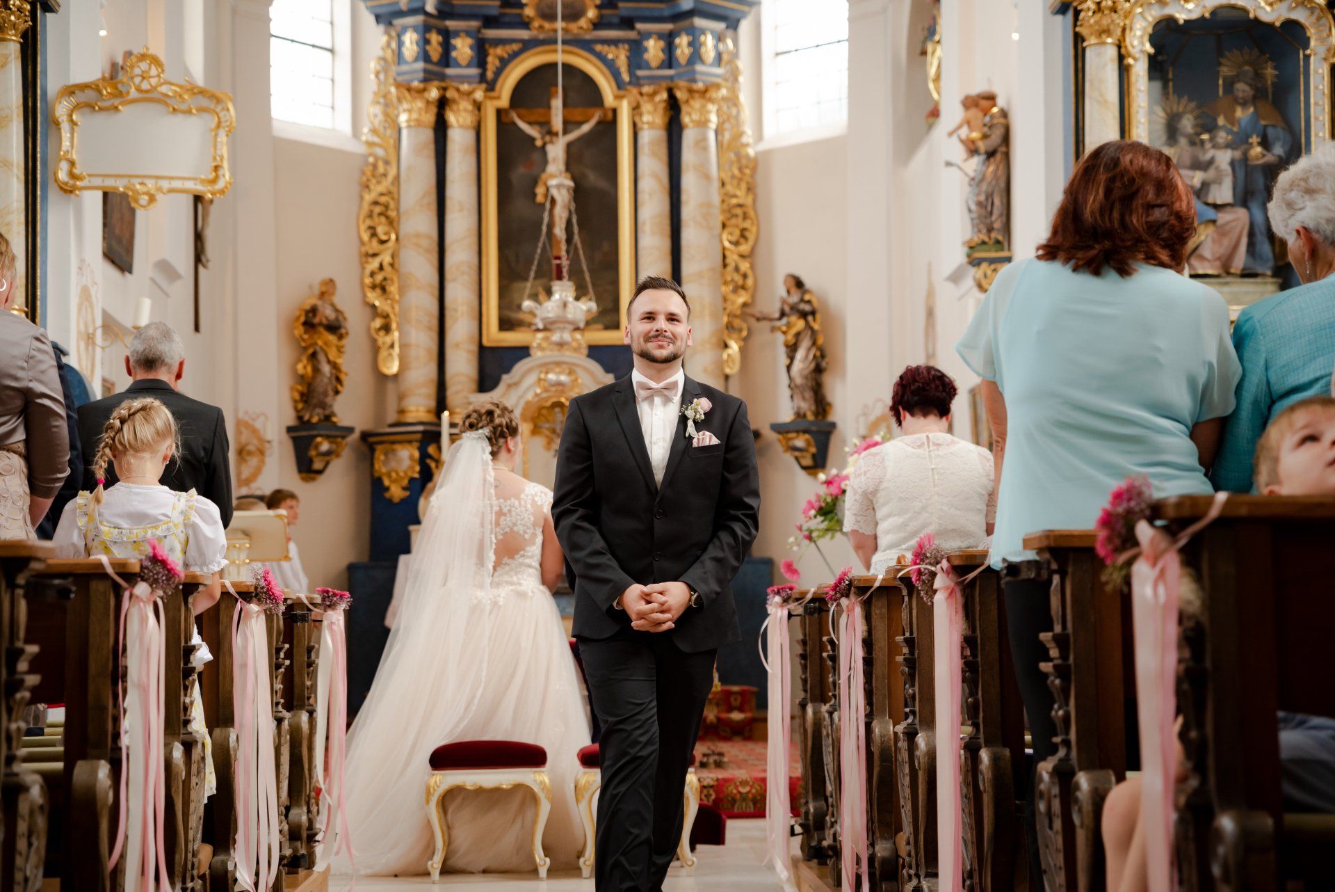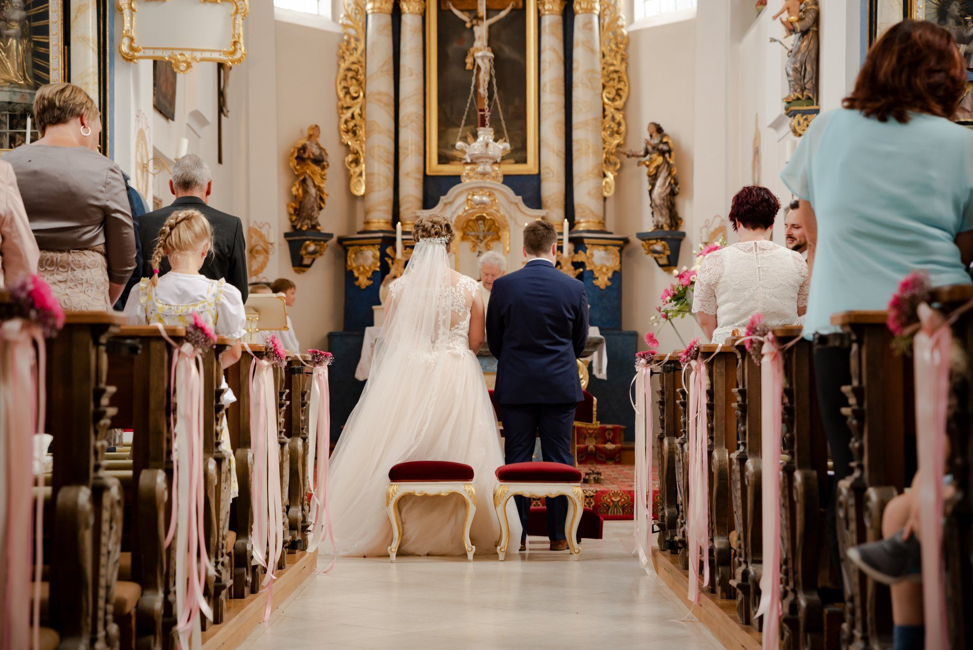 Der "First Look" fand im wunderschönen Kloster Wettenhausen statt, was auch unglaublich gut zu diesem wunderschönen Kleid von Vera passte. Die Trauung fand in meiner Heimatkirche St. Nikolaus in Kleinkötz statt. Anschließend ging es nach Gundelfingen in einen wunderschönen Stadel wo die Party bis in die Morgenstunden ging.
